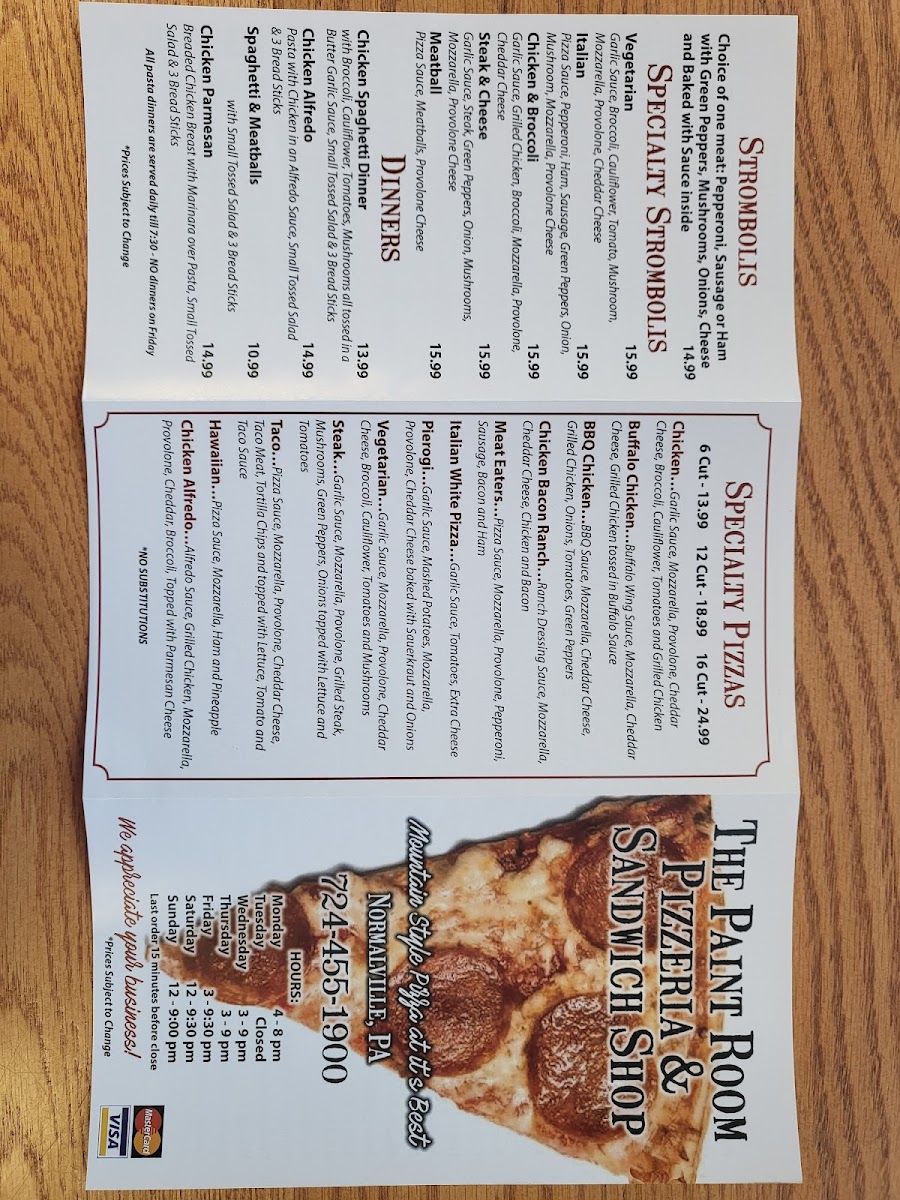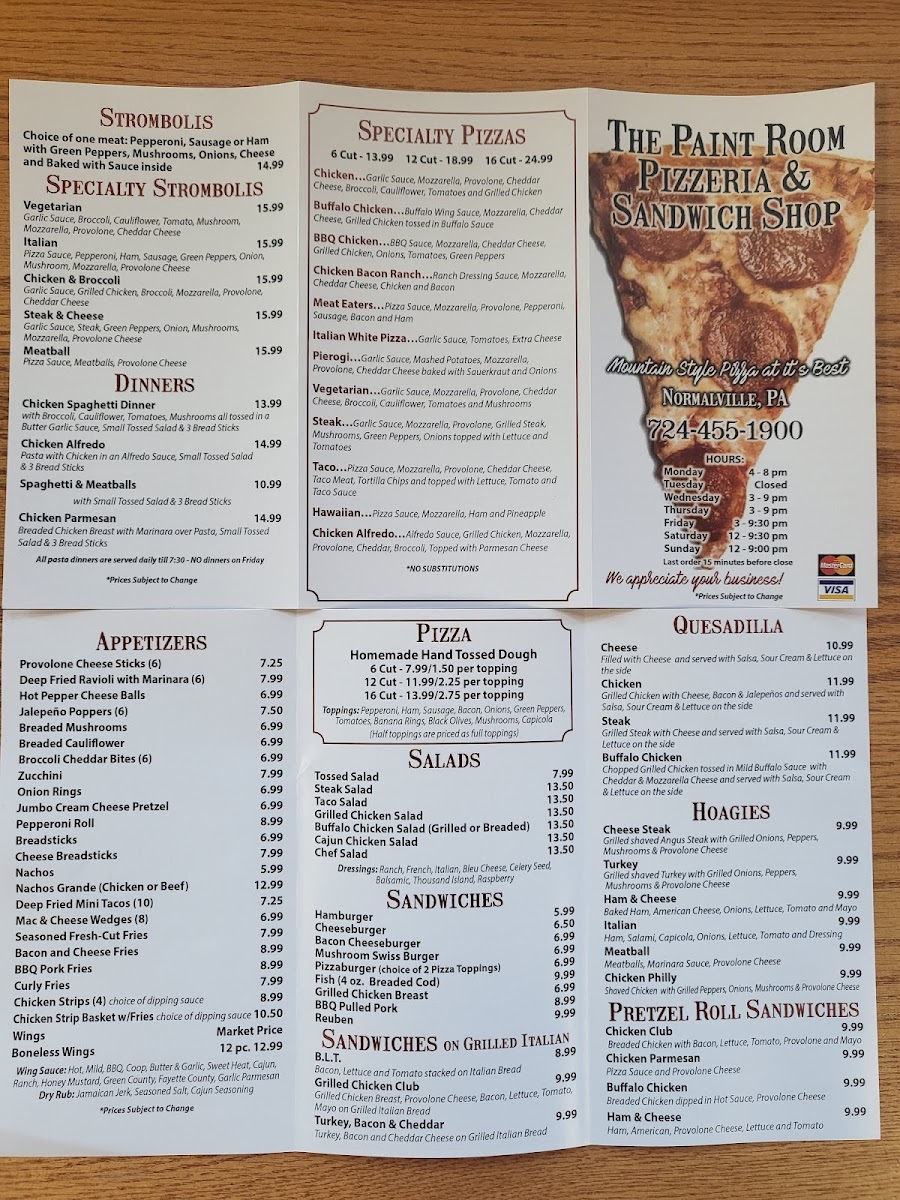 The menu at Paint Room Pizzeria & Sandwich offers a straightforward, approachable selection built around timeless favorites and comforting meals. It’s the kind of place where pizza and sandwiches provide casual, satisfying bites perfect for a relaxed lunch or a quiet dinner.